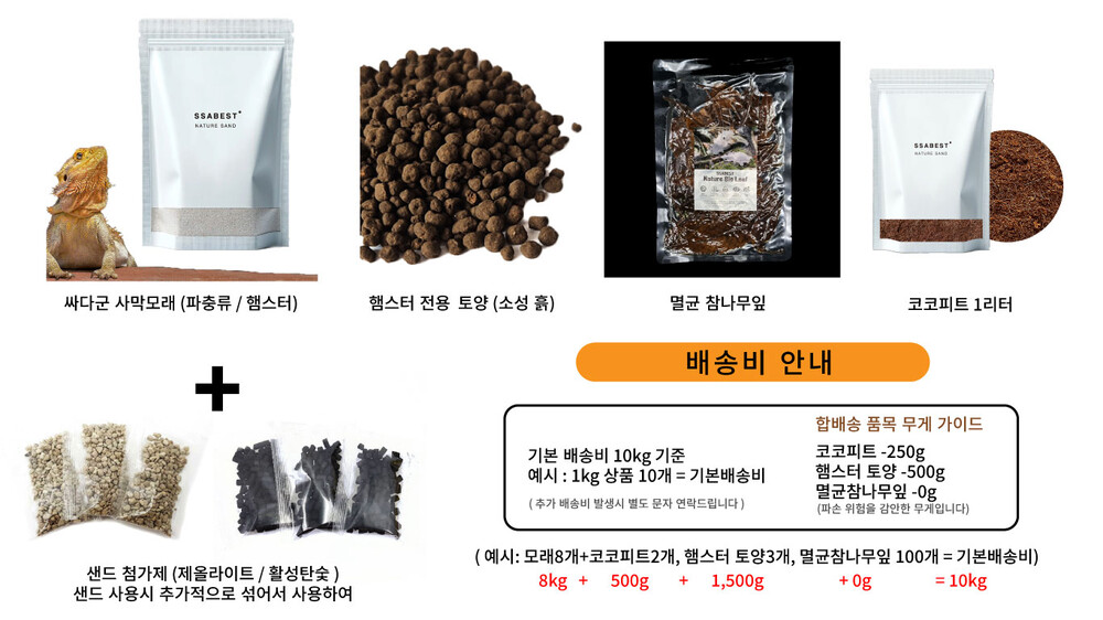 모래 단일 10KG 초과 구매시 추가배송비 발생합니다.(10개까지 된다는 뜻입니다 ... ) 반복되는 추가배송비 거절 고객은 주문거절될수 있습니다.
