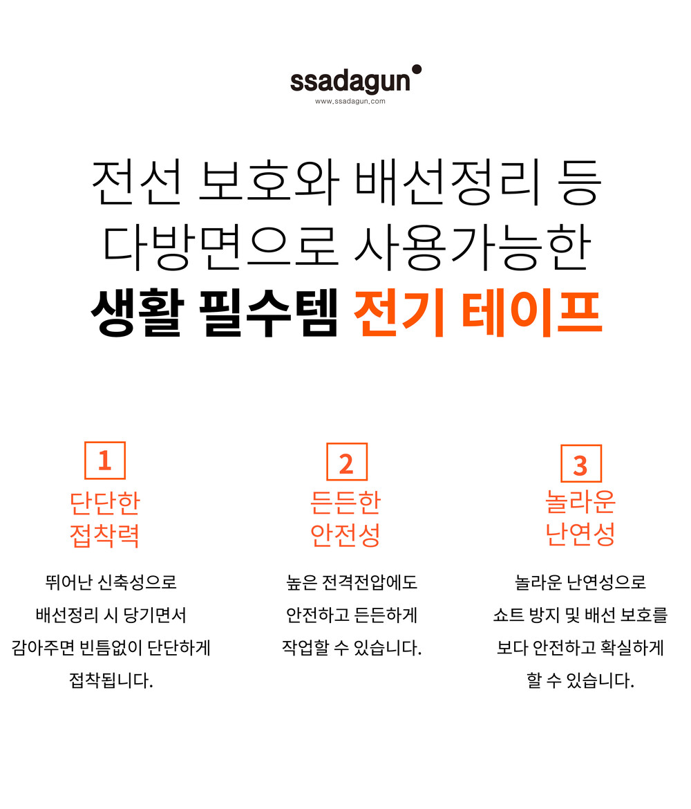 특유의 신축성과 단단한 접착력 그리고 전격전압에 대한 내구성과 각종 쇼트방지 및 배선보호까지