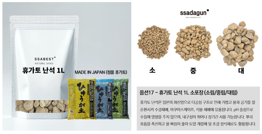 해당 제품은 MADE IN JAPAN 정품 휴가토 난석을 1L 단위로 소포장한 제품입니다.