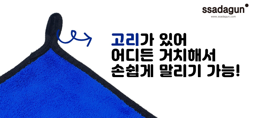 고리가 있어 어디든 거치해 손쉽게 말리기 가능하다!