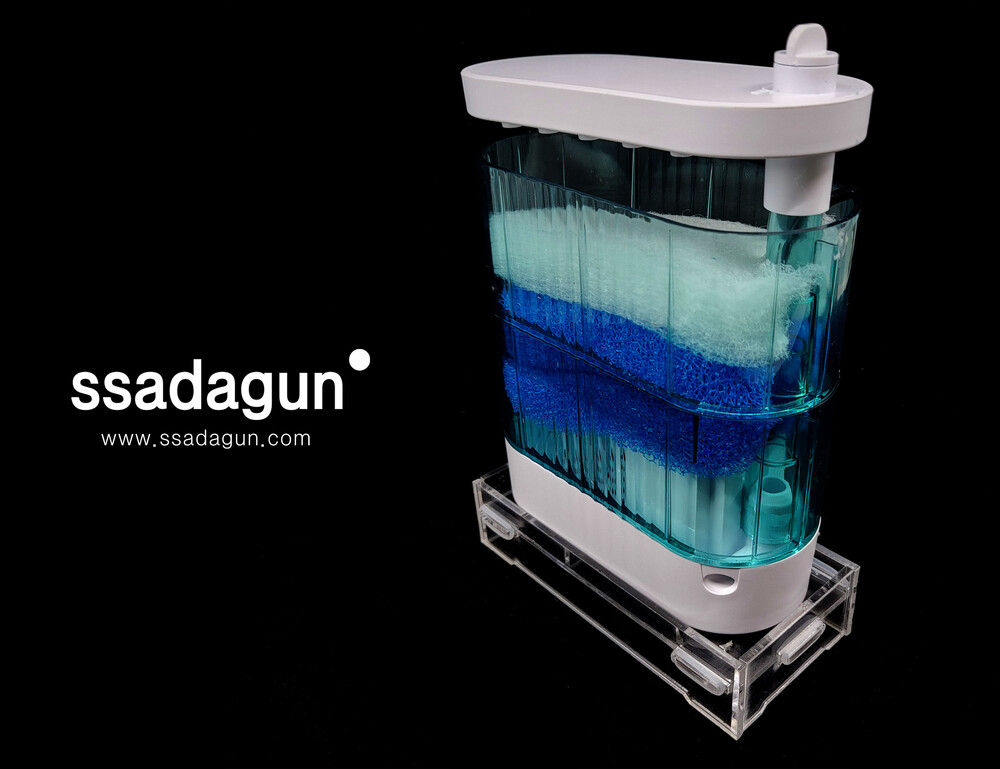 바닥면 흡입구조를 고려한 미세 흡입구와 바닥 흡입을 돕는 띄움식 구조, 다리 형태를 추가하여 물순환을 고려한 디자인입니다