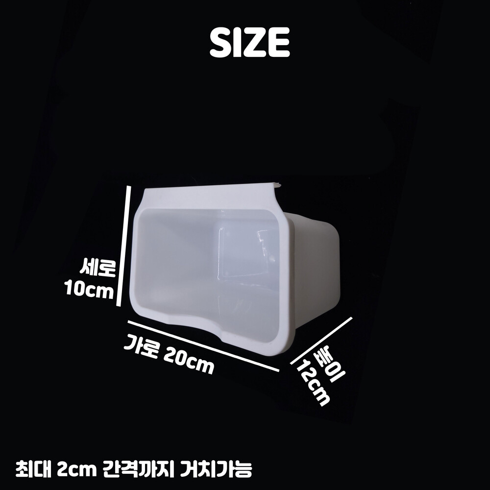 "거치형 정리통"은 수조 측면에 걸 수 있는 플라스틱 거치통으로, 모던한 디자인과 색감으로 미관을 해치지 않고 사용할 수 있습니다. 제품은 다양한 크기의 수조와 함께 사용할 수 있으며, 수조 관리에 필요한 도구나 사료통 등을 보관하기에 매우 편리하게 제작되었습니다.또한, 물에 젖어도 관계없는 방수 기능과 높은 내구도를 가지고 있어 오랫동안 사용이 가능하며 수조와 함께 사용하는 도구들을 깔끔하게 정리할 수 있어 수조 관리를 보다 편리하게 할 수 있습니다