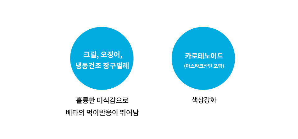 크릴 7.55% / 오징어 6.8% / 냉동 건조 장구벌레 5%