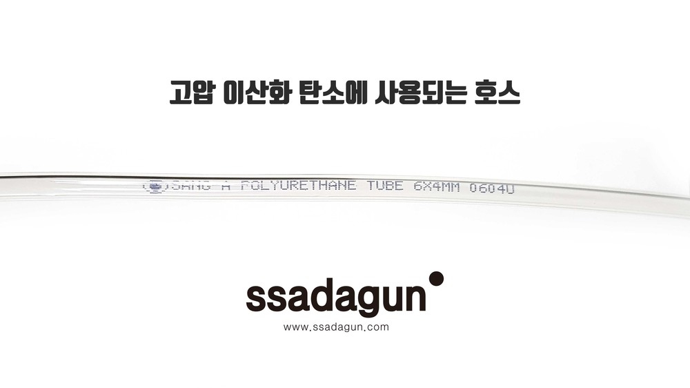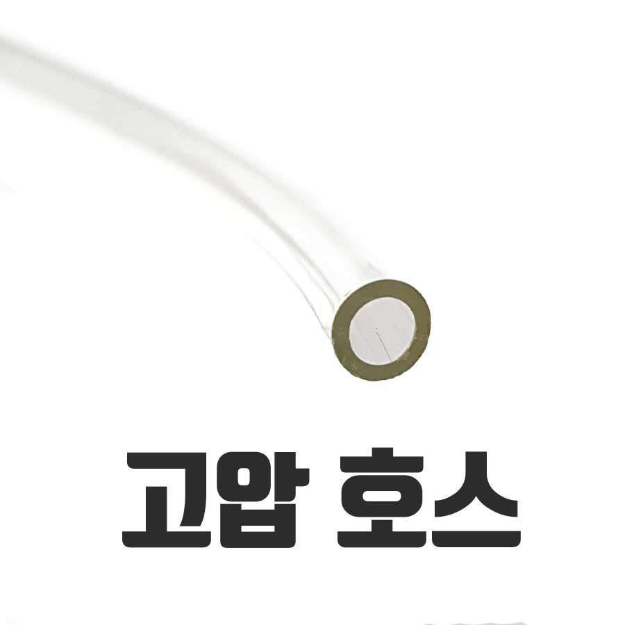 고압 이산화탄소에 사용되는 굵은 고압용 호스입니다.