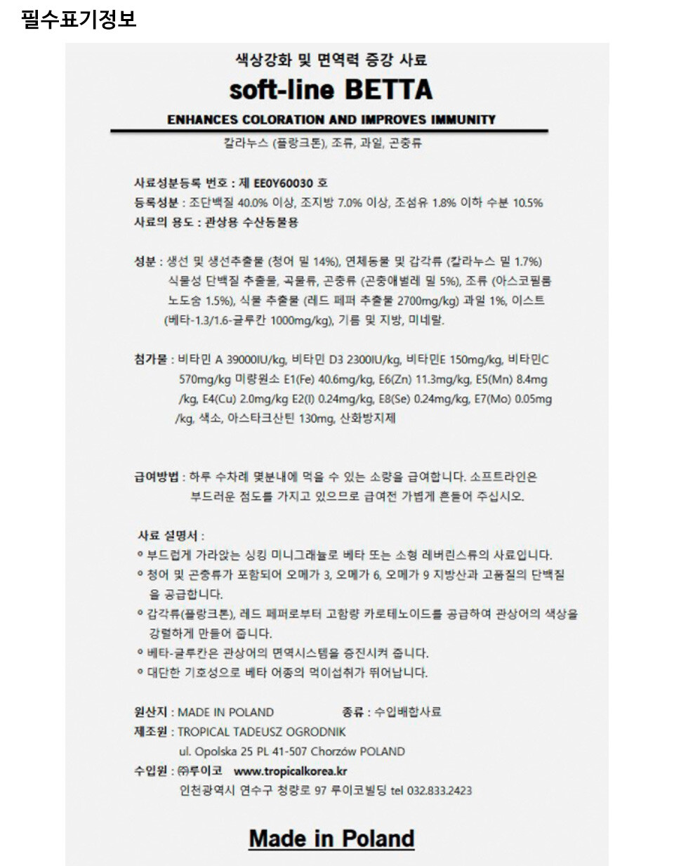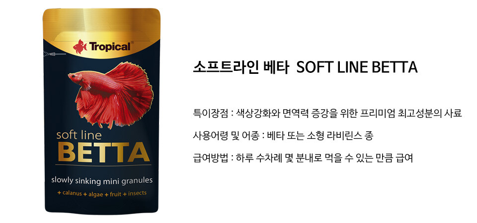 트로피칼 소프트 라인업 제품은 최상등급 사료라인 입니다