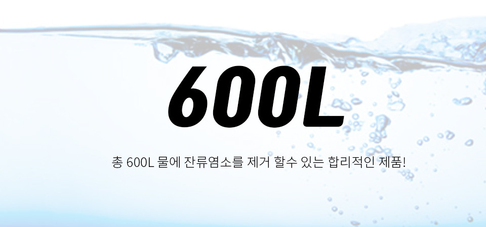 총 600L 물에 잔류염소를 제거 할 수 있는 합리적인 제품!