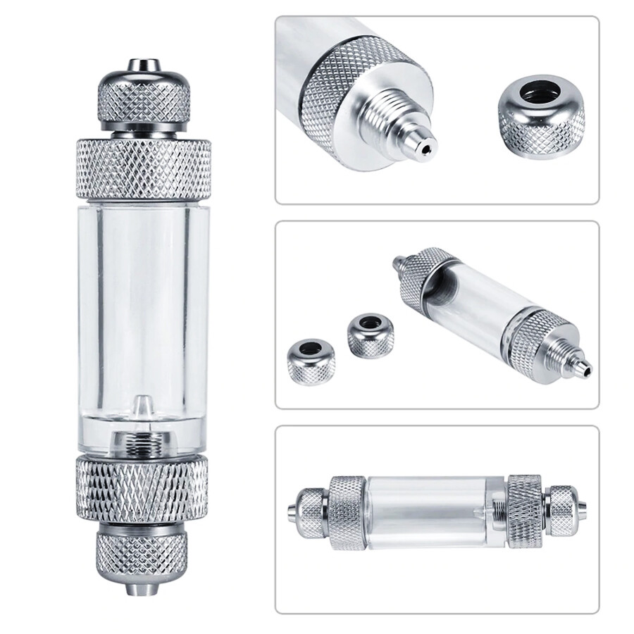 이산화탄소를 공급해주는 고압호스선 중간에 해당 제품을 양쪽에 체결하여 장착합니다. 투명관안에 물을 채워 체결 후 이탄이 관안에 물속에서 방울로 이동되는걸 확인하여 이탄공급량을 확인 할 수 있는 제품입니다.