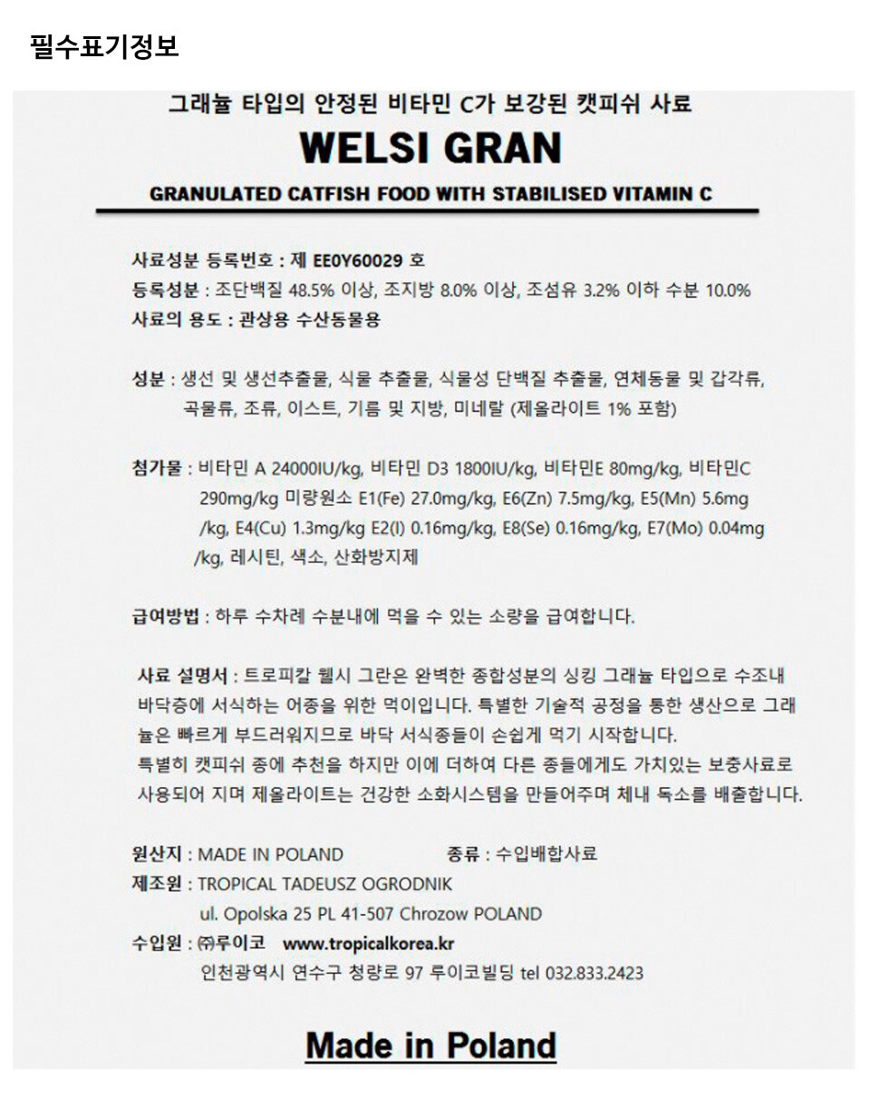 코리도라스 전용사료