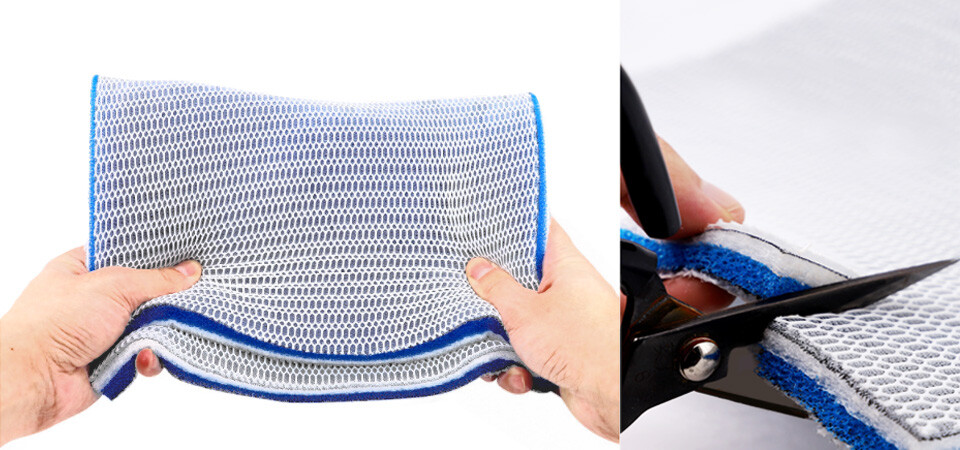 높은 탄성, 손쉬운 컷팅, 300회 이상 세척가능한 내구성, 여과력과 투수력, 완벽 그자체