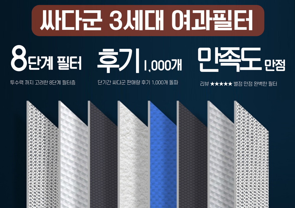 강력한 물리적 여과와, 고효율 여과 배균이 가능하기 때문에 기존 필터보다 압도적으로 좋음