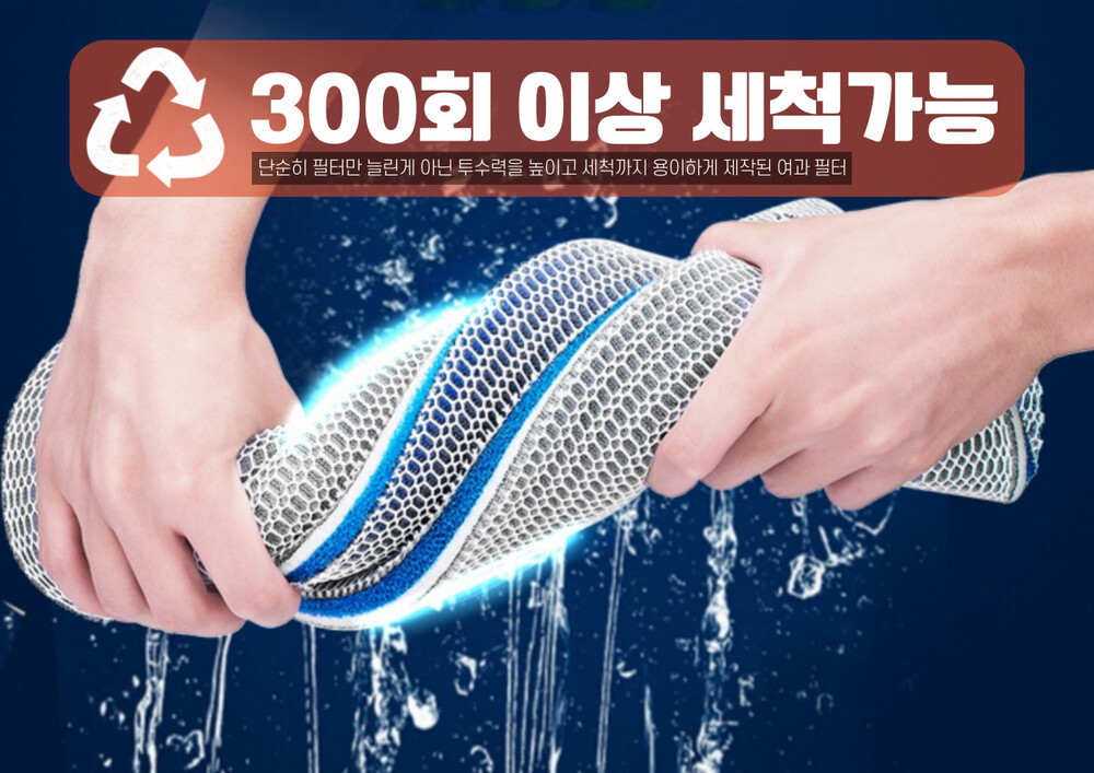 - 300회 이상 반복세척 가능한 내구성